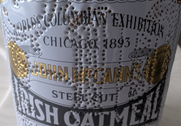 The 10-year anniversary gift is something tin or aluminum. I hand-punched this oatmeal tin for my wife.