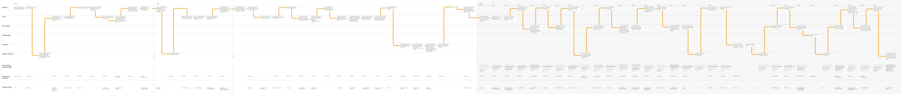 A service blueprint detaling services necessary to support oncology care from first symptom through remission.