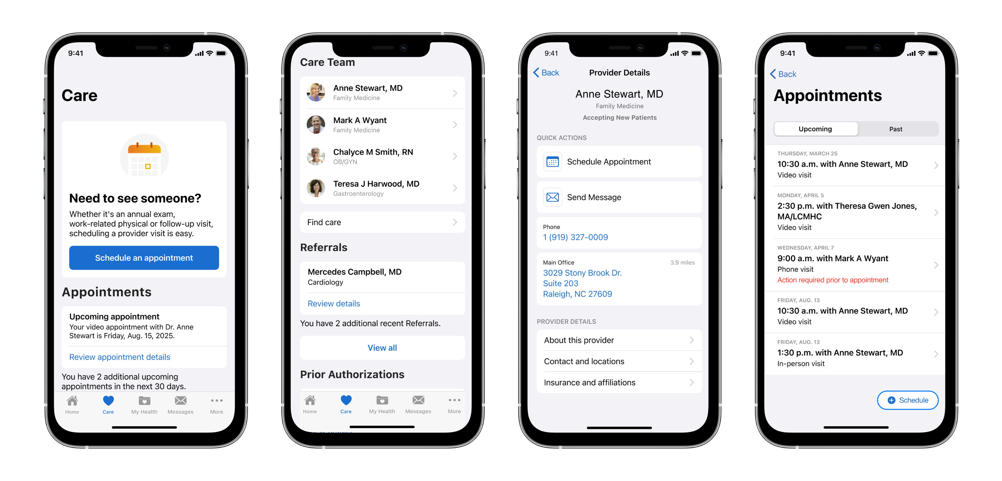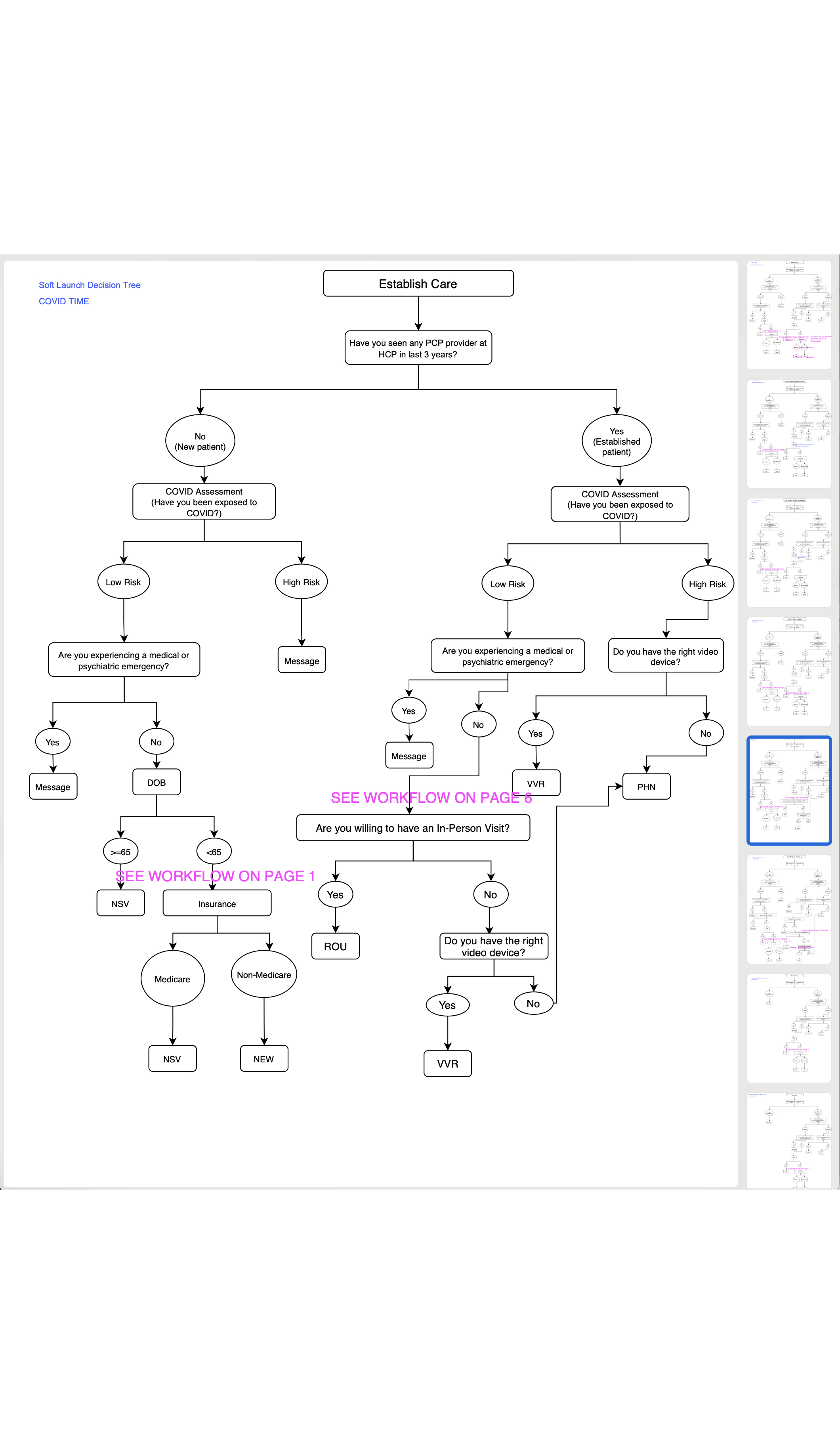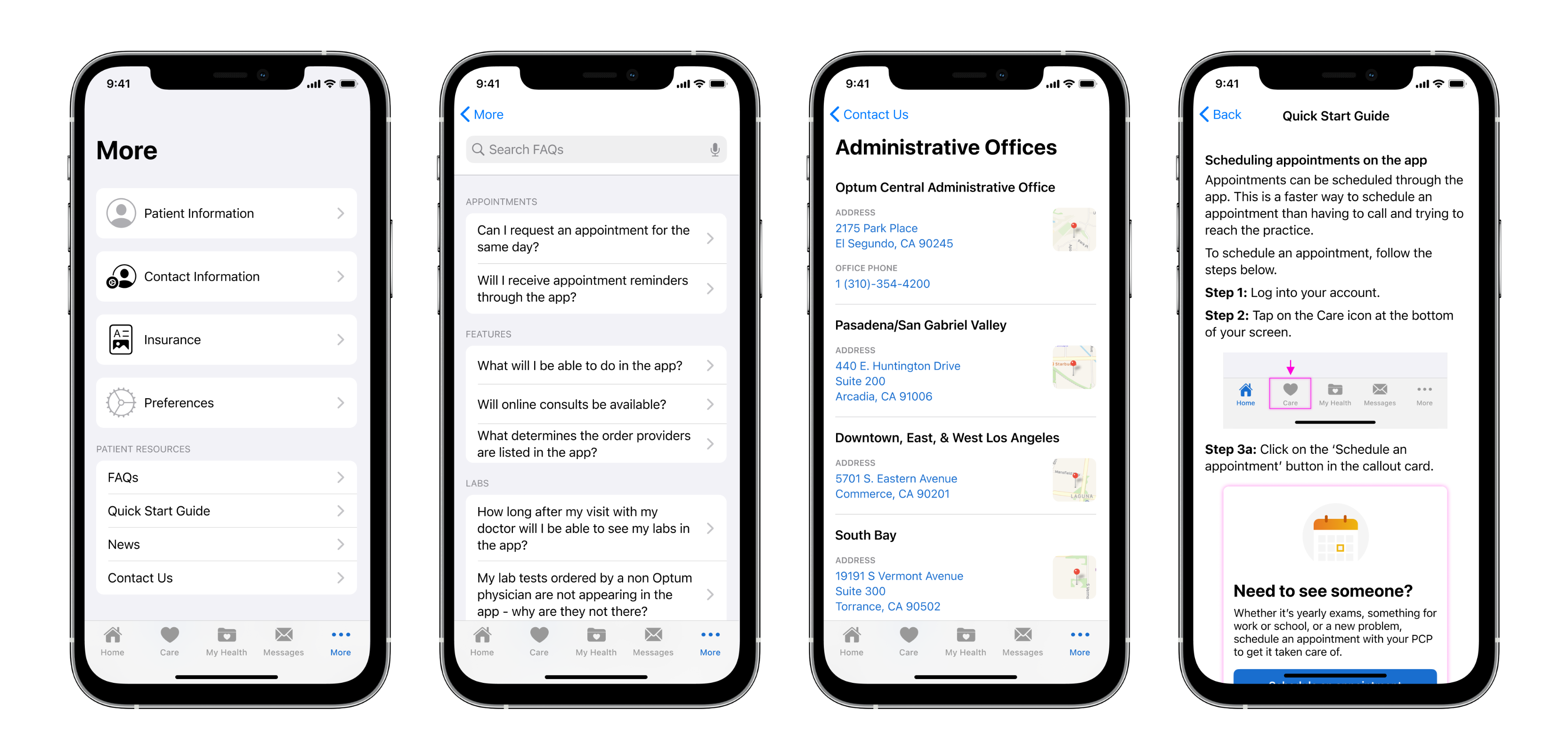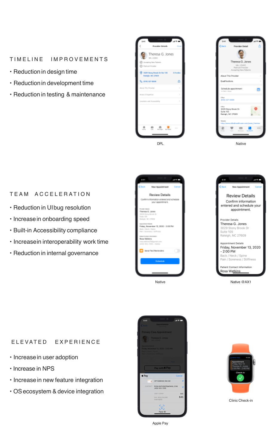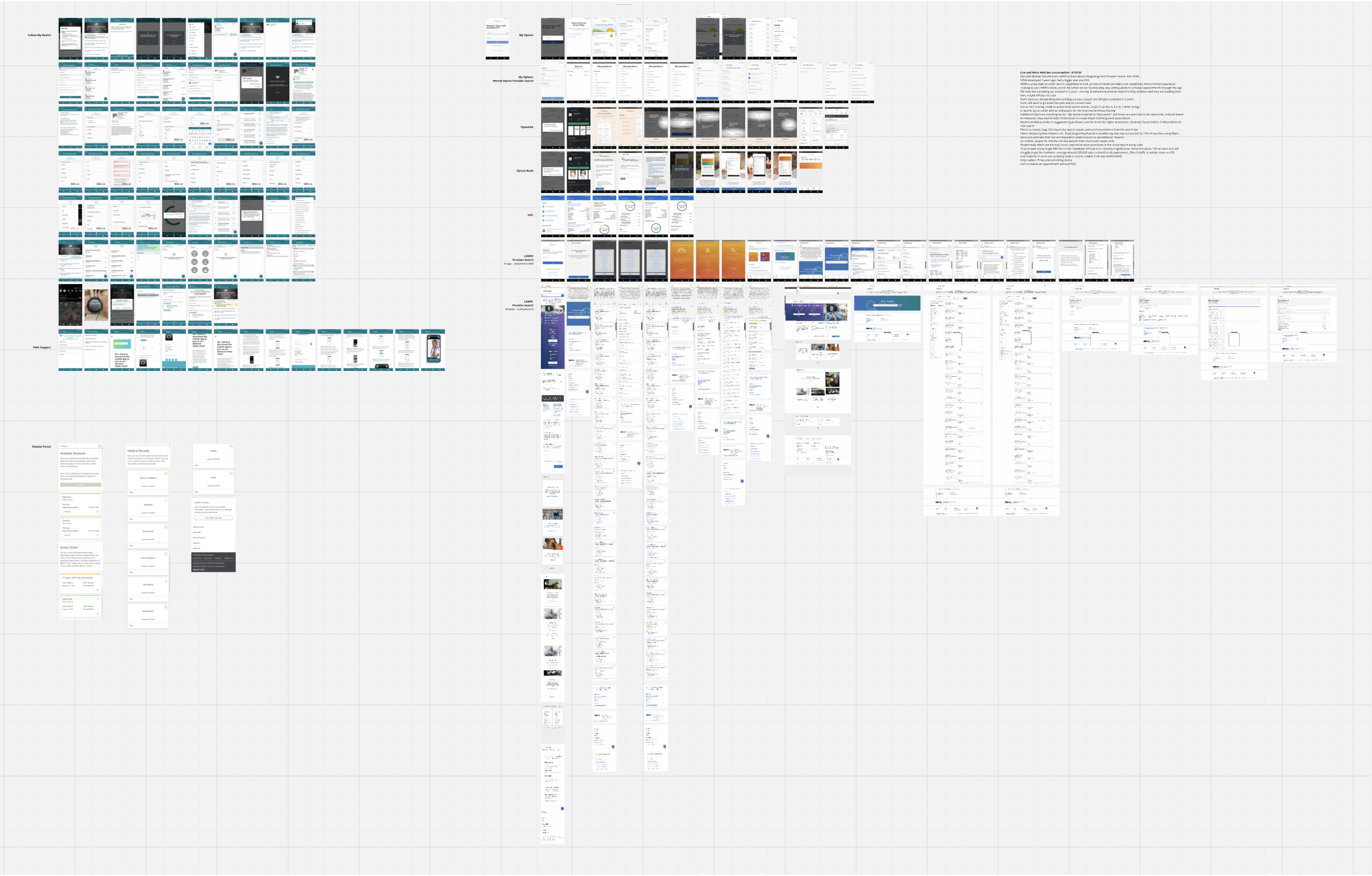 The Scheduling and Appointment capability turned out to be one of the most complex. A 3rd party solution had been chosen, but the service was only developed to allow a rigid flow of scheduling that began with choosing a provider, then a reason for visit, purpose of visit, then date selection. But there were additional requests for some care partners to include a visit purpose, type of visit (physical, phone, virtual), and the ability to ask COVID-related questions.There was also the desire from users to first select a date and THEN choose any available providers. That broke some minds. I designed over a dozen full-flow iterations for the Scheduling flow, with each version highlighting another consideration or compromise a business, clinical, or engineer team would have to make. Throw in some Rescheduling considerations and we had some fun conversations.