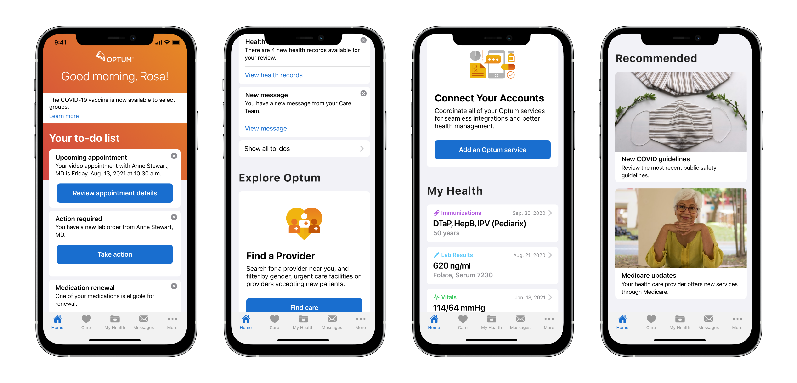Our initial charge was to assimilate with the mobile delivery team and directly translate the web experience into a mobile app. As we followed this path, we saw more opportunity to influence not just the final product, but Optum’s consumer voice and direction going forward. With these benefits in mind, we leaned in and helped redefine the mobile MVP.