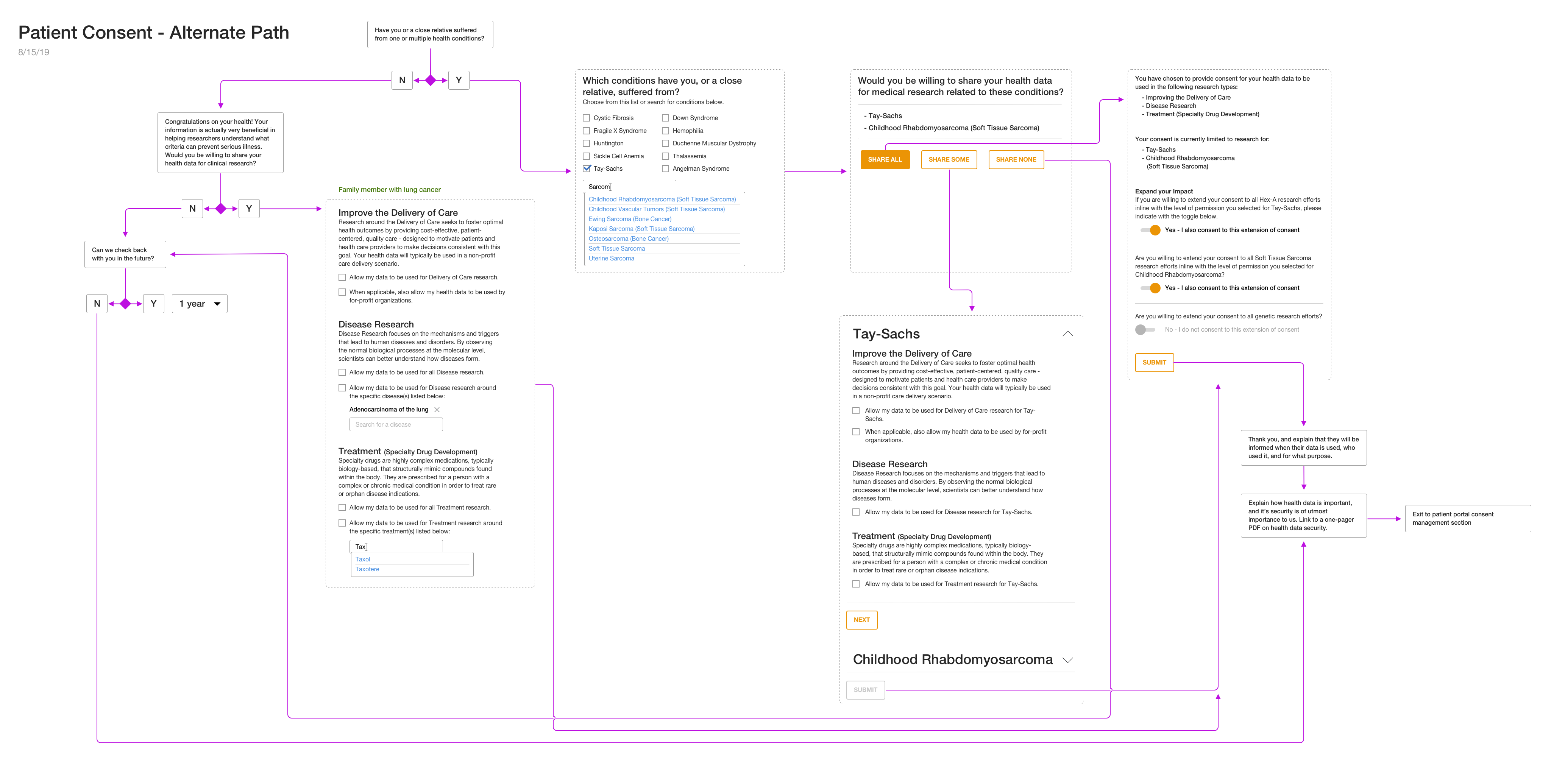 User flow clarifying alternate consent flow for genetic treatment.